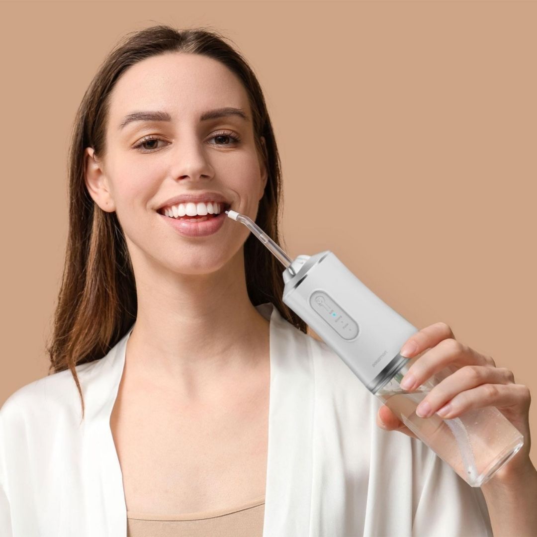 Yüksek basınçlı ağız bakım duşu, diş ipinin ve diş fırçasının ulaşamadığı noktalara kolayca ulaşarak bakterileri temizler; implant, diş teli ve hassas diş etleri için güvenli bir çözüm sunar. • 3 modlu ayarlanabilir su jeti • 4 farklı başlık • 175 ml su kapasitesi • IPX6 su geçirmez yapı • Type-C şarj ile ~4 saatte dolum